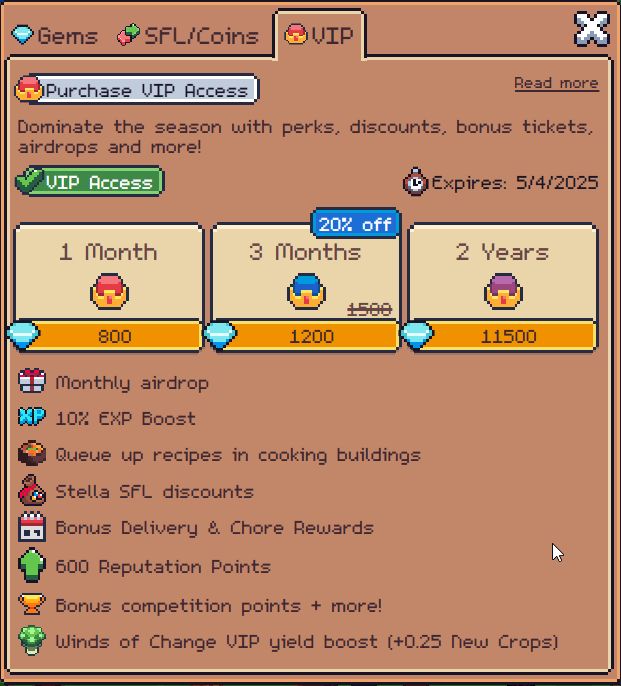 Fun Fact: While purchasing VIP access now adds time to your current expiry (If I bought 1 Month now my expiry would change to 6/4/2025), it used to be based on calendar months also, specifically when the new Chapter arrived. If you joined the game in the third month of the Chapter and bought VIP, you would only get it for 1 month! So, it’s better the way they have it now.