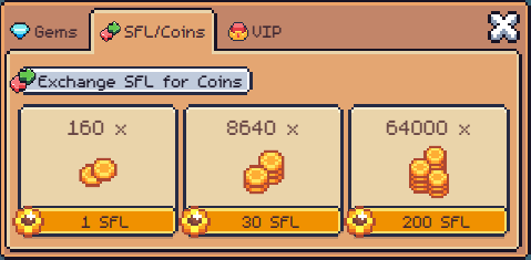 Another great way to get Coins is to exchange some SFL. While you can do that from the in-game menu directly, the conversion rate isn’t very good. Especially now that the USD price of SFL has more than tripled in recent weeks!